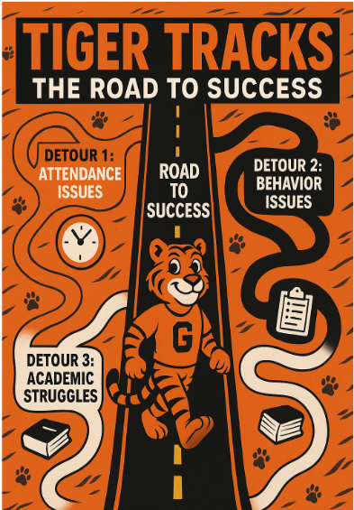The Tiger Tracks system promotes success in school by using a three-pronged approach, keeping students on the Tiger Track by avoiding common "detours" that alter the students course...