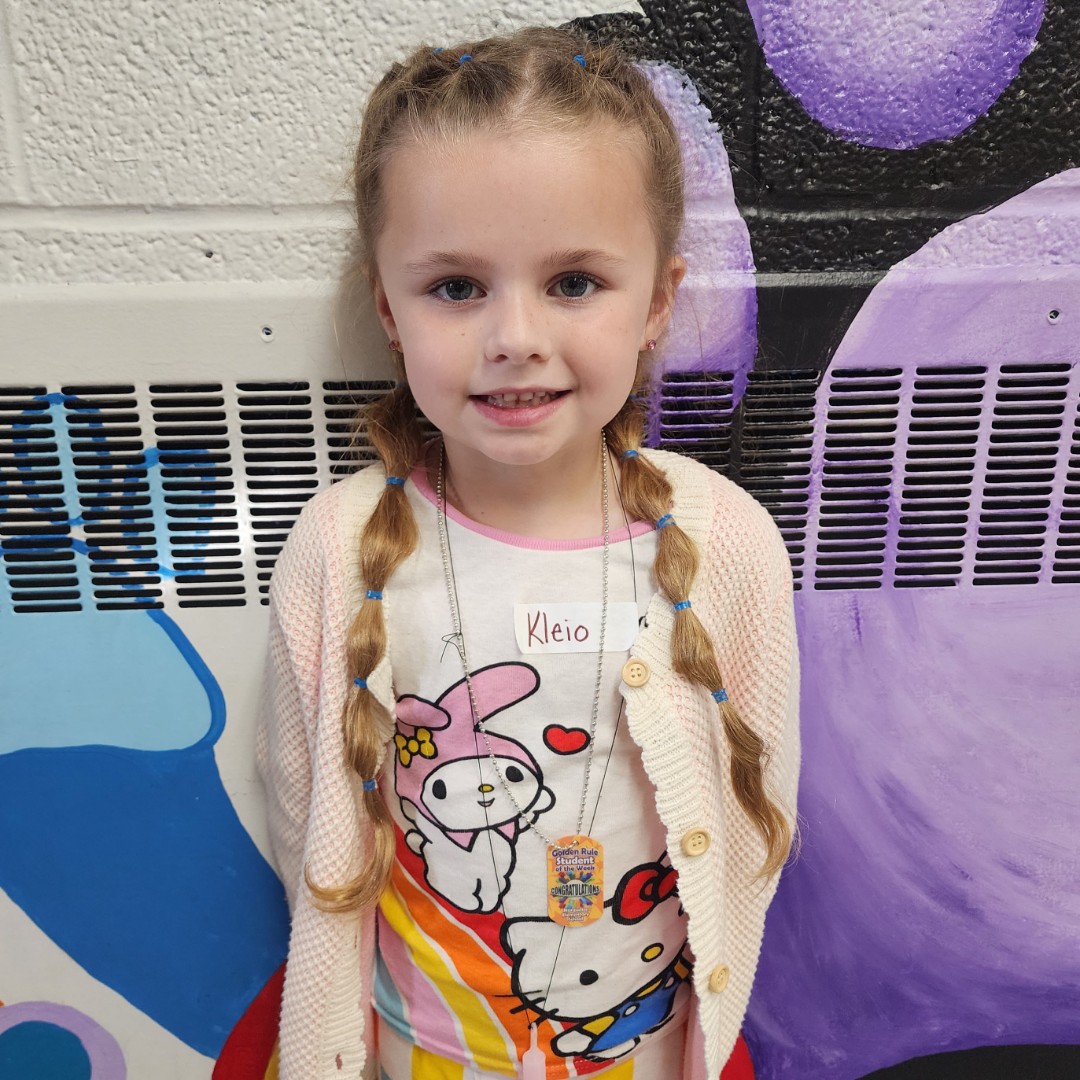 |  | We are so excited that Raegan was chosen as our next "Golden Rule Student of the Week"! Here is what Mrs.Schlottman had to say about her... I am so thrilled to be able to choose my first student of the week. This student shows up to school every day being respectful, responsible, and is ALWAYS ready to learn. This student is kind to all of her friends, and is always willing to help when needed. When our classroom is given a task or instructions, this student is always a first time listener and makes sure she is doing her best. This friend tries hard every day and is a great role model to the other students. Please congratulate our classroom’s student of the week : Raegan! |
